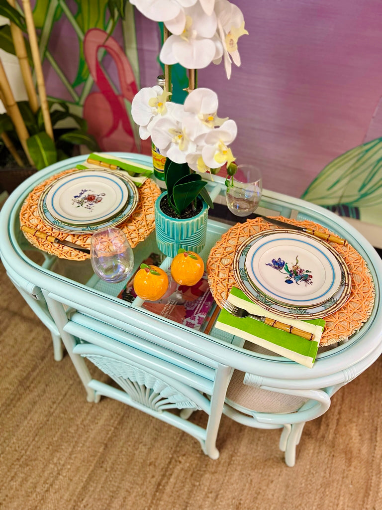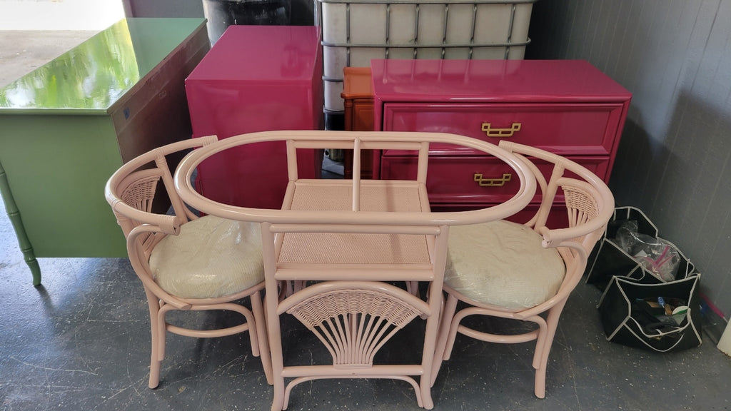 Vintage Rattan Honeymoon Table and Chairs Available to Customize!