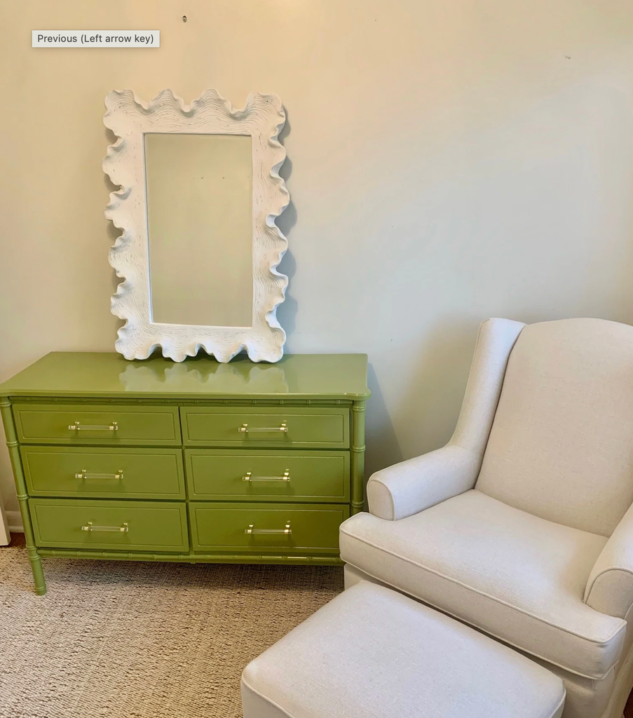 Vintage and Rare Faux Bamboo Six Drawer Dresser Available for Custom Lacquer // Classic vintage faux bamboo dresser is available and ready for lacquer! Highly sought after is a SIX drawer design, faux bamboo detailing throughout and all original brass swing three piece hardware- which will be painted in gloss gold... drawers slide beautifully withs lots of storage. This piece is in perfect vintage condition! Use this timeless classic design as a dresser, changing table, entry table, and so much more! This piece is in raw condition, additional photos are for lacquer inspiration. One stock lacquer color is included in price or you may choose a custom color of your choice for $175 upcharge. Our painters can match any BM of SW swatch- please note your lacquer color in the notes section upon checkout! *If unsure of lacquer color, you have three weeks to let us know once purchased! Additional photos are for lacquer color inspiration.