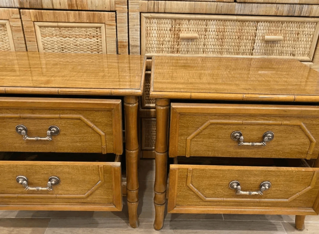 Vintage Pair of Broyhill Furniture Faux Bamboo Nightstands Available to Customize!